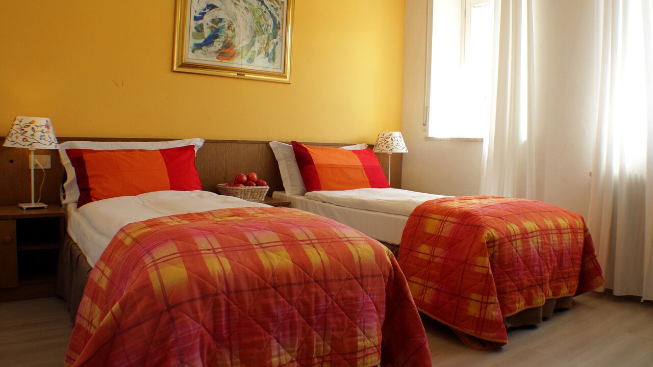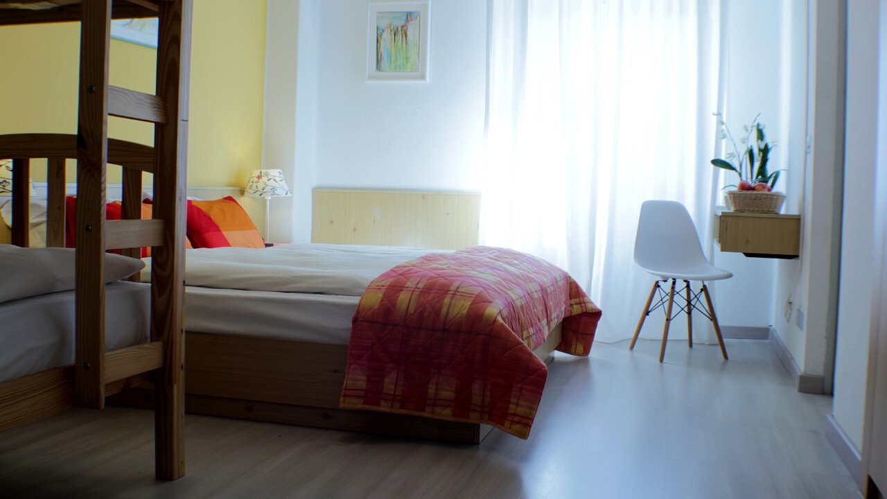 L’accogliente struttura dallo stile architettonico funzionale è adatta sia alle famiglie, sia agli sportivi e alle persone con disabilità. Le due confortevoli suite e le spaziose e luminose camere doppie, triple e quadruple sono dotate di servizi, doccia, phon e TV. Su richiesta si possono aggiungere una culla o un lettino.