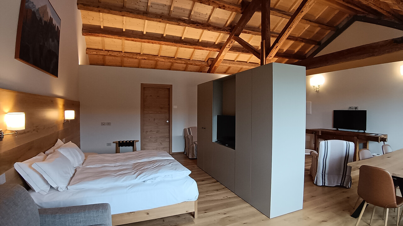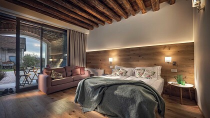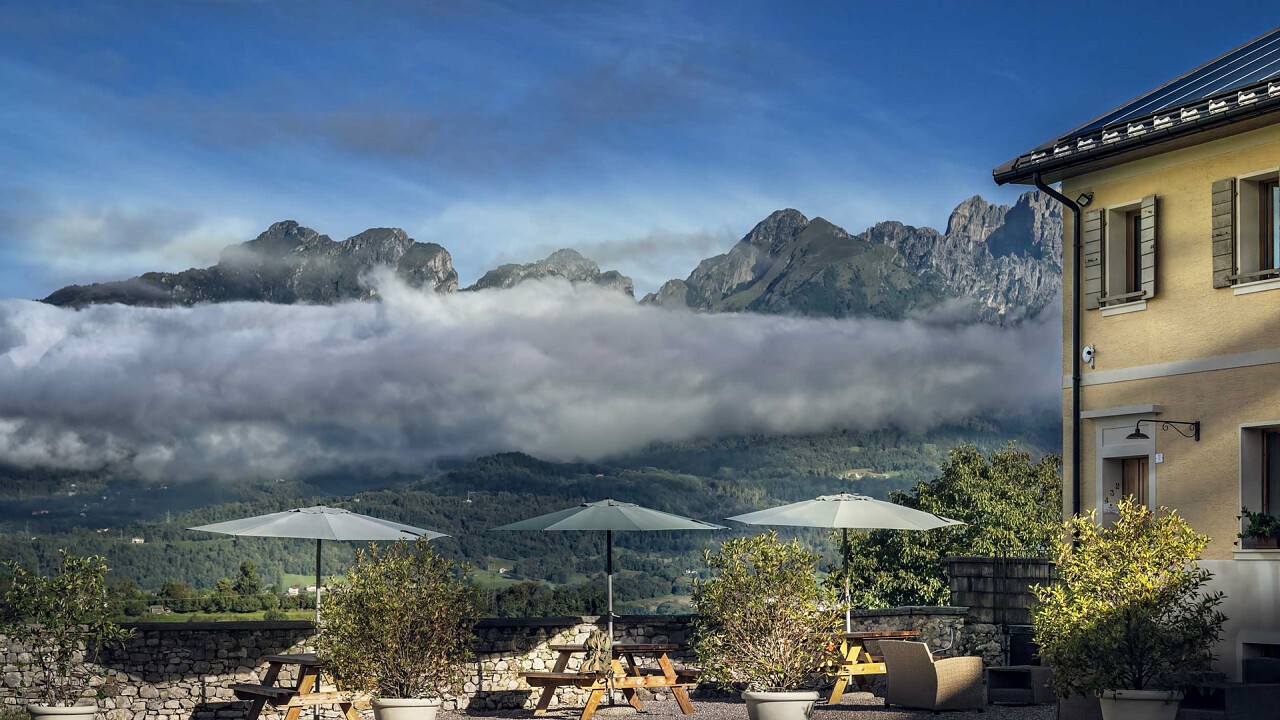 A pochi passi dalla Villa, l’antica latteria del borgo agricolo ospita oggi un raffinato agriturismo di charme, dove la tradizione contadina incontra l’eleganza del design contemporaneo. Ristrutturato con gusto e attenzione ai dettagli, accoglie camere e appartamenti luminosi, con arredi essenziali e ricercati, pavimenti in legno, grandi vetrate panoramiche e splendidi bagni con docce a pioggia. Ogni spazio gode di una vista unica sulla Valbelluna, su Belluno e sul campanile che svetta in lontananza.