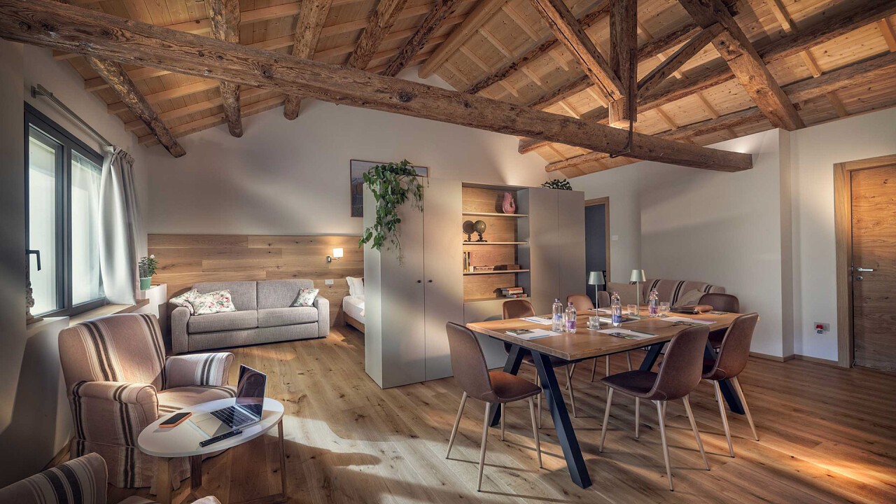 “DOLOMIA” è uno stupendo ed esclusivo “LOFT” di design (66 mq complessivi) dell’agriturismo nel borgo della Villa di Mod...