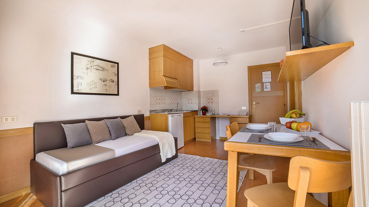 L'hotel offre camere con terrazzo, telefono, TV sat, collegamento sky, frigobar, phon e cassaforte. Nel Residence invece sono disponibili appartamenti monolocali (per 2-3 persone) e bilocali (per 4-5 ospiti), alcuni con terrazza-solarium e tutti con telefono diretto, tv, radio, bagno, fon, stoviglie e attrezzature da cucina.