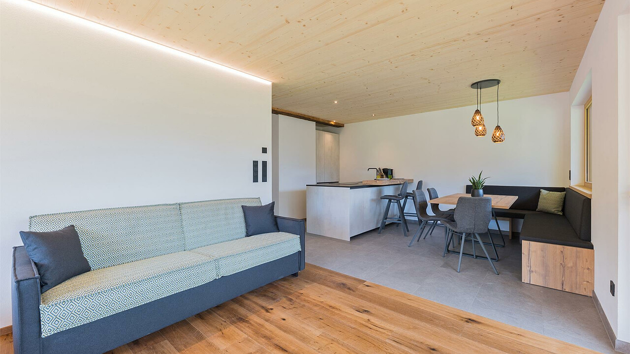 Arrivare – sentirsi a casa – una boccata d’aria per il nostro spirito. Una casa in legno Massicio con un rigenerante profumo dei nostri cirmoli, larici, pini e abeti lasciati allo stato naturale. Appartamenti da 2 a 6 persone. Il nostro extra: la nostra colazione a buffet nella stube con tanti prodotti freschi della nostra zona.