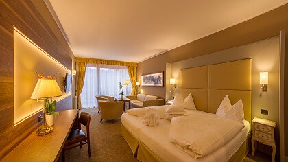 Gli interni eleganti creano un ambiente armonioso e raffinato. Le camere, che offrono ampi spazi ed arredamenti pregiati, dispongono di numerosi comfort quali bagno con WC, asciugacapelli, TV satellitare, radio, telefono, minisafe, frigobar e Wi-Fi.