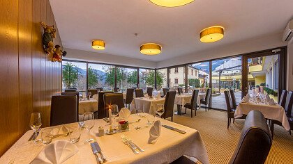 Il ristorante propone una cucina molto curata tra cui buffet di prima colazione con angolo Vital e cena con tre menu a scelta di 4 portate, buffet di insalate e a giorni alterni menu gourmet a 6 portate. Dolci e biscotti al pomeriggio. Nelle stagioni calde gli ospiti possono fare colazione in terrazza.
