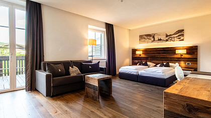 Le camere e suite, arredate con un raffinato stile tirolese che mescola tessuti in Loden e legno antico, offrono ambienti accoglienti e confortevoli. La maggior parte con balcone.