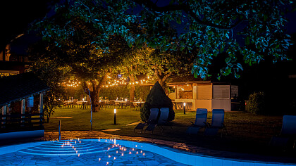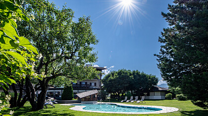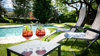 Gli ospiti possono rilassarsi nell’oasi wellness, dotata di sauna finlandese, biosauna, bagno di vapore, letto ad acqua e ampie sale relax, oppure allenarsi nella palestra attrezzata. Su richiesta si effettuano trattamenti e massaggi. Il giardino privato dell’hotel, con la vasca in pietra naturale (non riscaldata), il prato attrezzato e il ristorante all’aperto, rappresenta un’oasi verde per godersi il sole e la quiete durante la bella stagione.