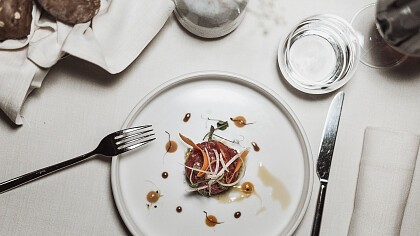 La cucina dell’hotel è uno dei suoi punti di forza. La giornata inizia con una ricca colazione alpina, preparata con prodotti freschi e locali, dolci fatti in casa, pane appena sfornato e proposte salate che soddisfano ogni gusto. La sera, il ristorante propone un percorso gastronomico che unisce tradizione alpina e creatività mediterranea, con piatti preparati con ingredienti selezionati e una curata scelta di vini regionali. L’ambiente è elegante ma informale, perfetto per chi desidera vivere un’autentica esperienza di hotel gourmet in Alto Adige.