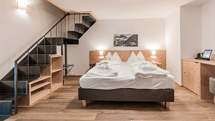 Due piani per un unico benessere: le nostre camere Galleria piacciono ai nostri ospiti per i soffitti alti e la piacevol...