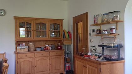 I nostri ospiti possono gustare la colazione fino al mattino, nella sala colazione, nel giardino o sul balcone della camera. Quindi ogni giorno inizia con una buona colazione a buffet nel sole del mattino.