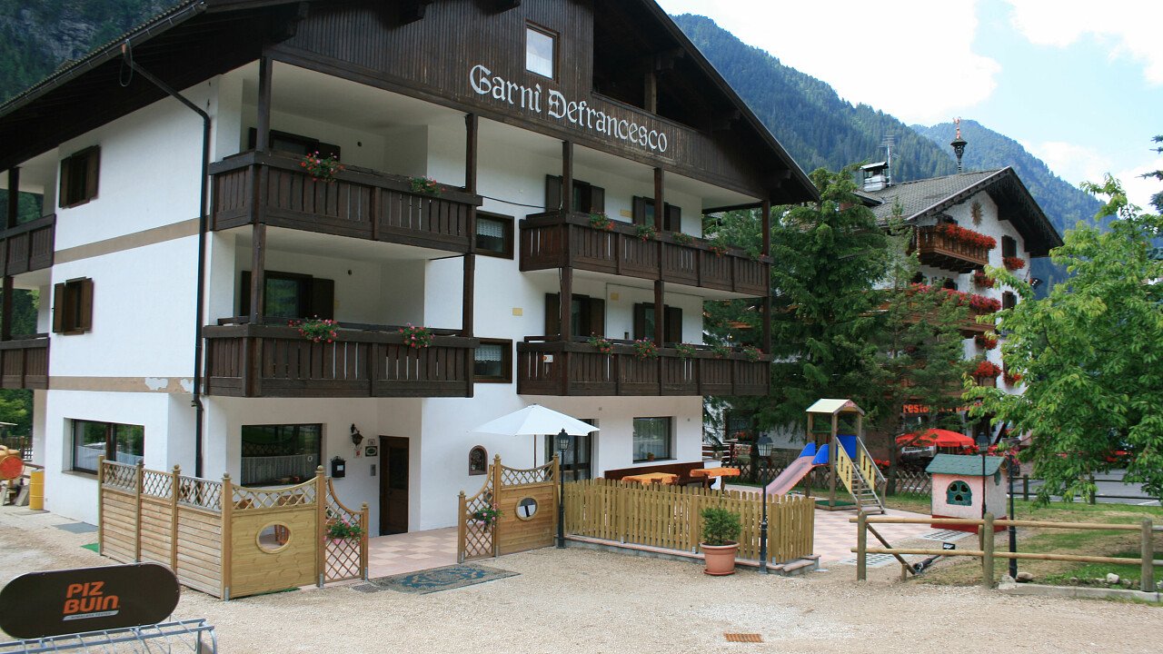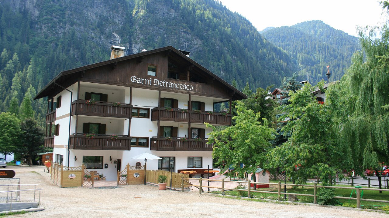 L'Albergo Garnì 2* Defrancesco si trova ai piedi delle montagne, nella frazione di Campitello di Fassa, vicino Canazei, nel cuore delle Dolomiti. A soli 100 mt dalla struttura c'è la fermata dello skibus che porta alle vicine piste da sci alpino e di fondo del Dolomiti Superski e alla partenza di molti percorsi trekking e di MTB.