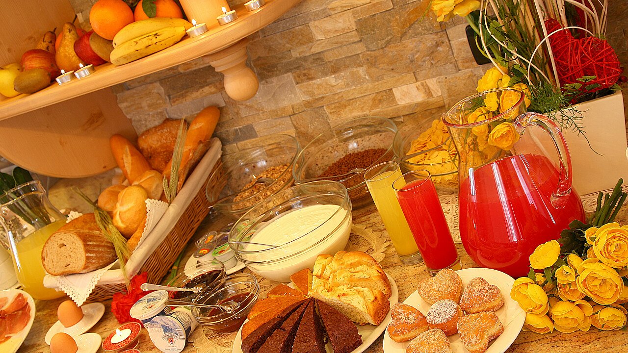 Il servizio di prima colazione offre agli ospiti un ricco buffet con prodotti fatti in casa (torte, pane).