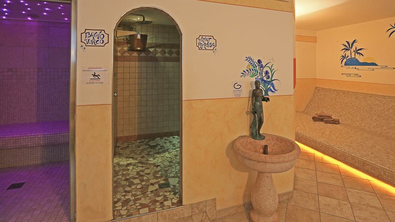 Il centro wellness è dotato di bagno turco con musicoterapia, bio sauna alle erbe alpine, sauna finlandese, percorso Kneipp, nebbia fredda, pioggia tropicale, risveglio glaciale, idromassaggio, cabina infrarossi, massaggi e trattamenti.
