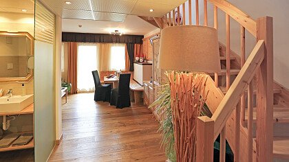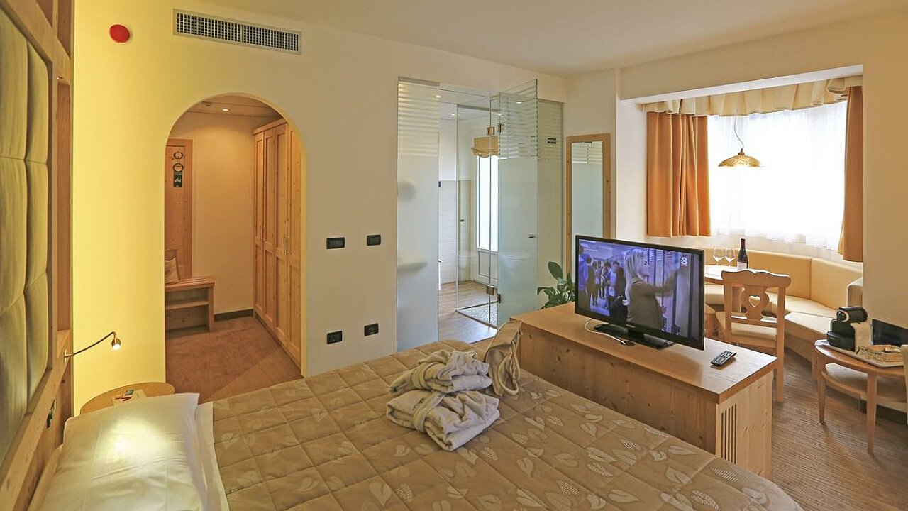 La struttura eco-friendly offre moderne camere e suite arredate in un caldo stile montano e dotate di TV, cassaforte, Wi-Fi, bagno con doccia, phon e telefono. Molte godono di una spettacolare vista sul Gruppo del Sassolungo. Lo stabile dispone, inoltre, di uno spazioso appartamento, di recente costruzione e ben fornito.