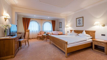 L'albergo è perfetto anche per le famiglie con le innumerevoli proposte offerte dal territorio e i vari servizi a disposizione come le camere familiari con stanze separate per i bambini, parco e sala giochi, animazione, massaggi per i bimbi, fattoria degli animali, campo da tennis e maneggio.
