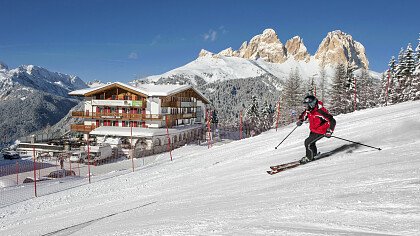 La cucina di quest'hotel in Val di Fassa è particolarmente curata e propone i piatti della tradizione trentina accompagnati da vini selezionati con passione dal sommelier dell'albergo che vanta una cantina con etichette pregiate sia italiane che internazionali. Su richiesta sono disponibili piatti vegetariani e per celiaci.