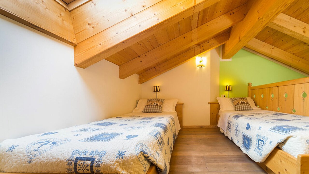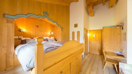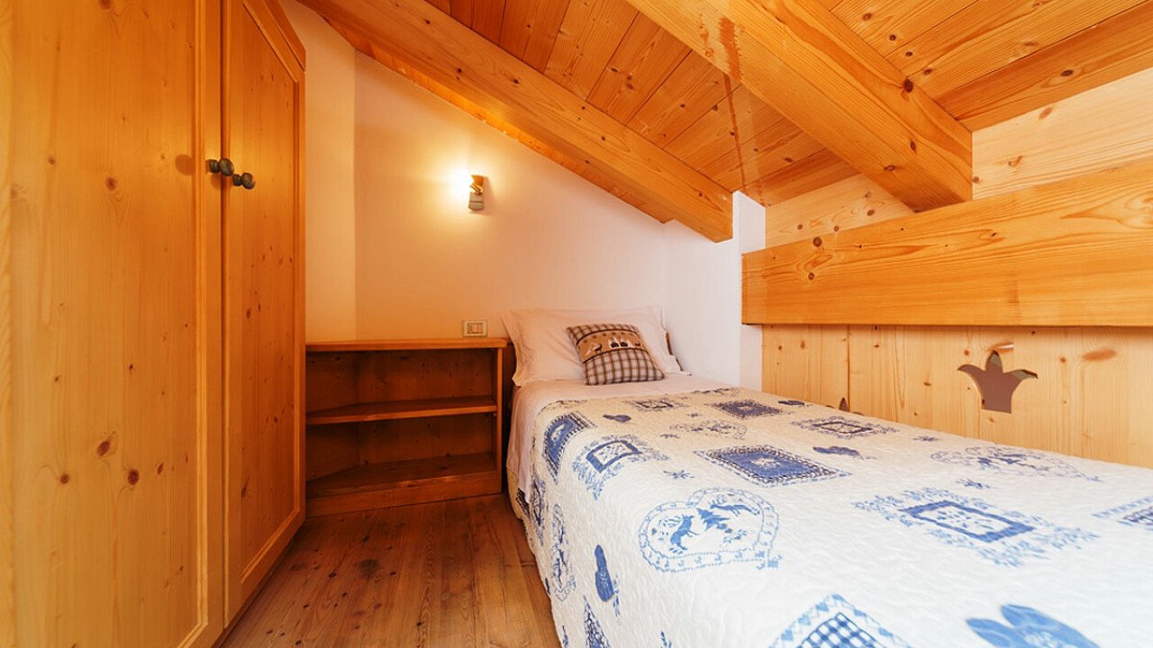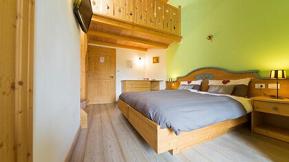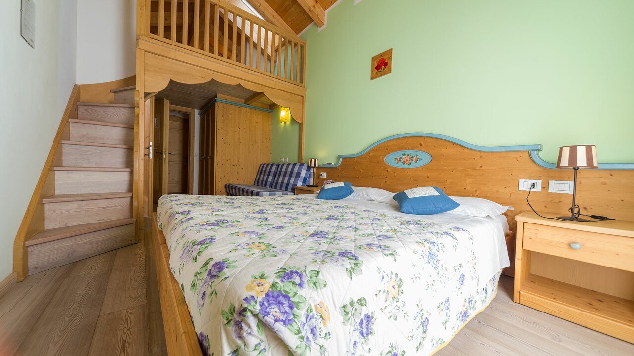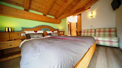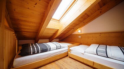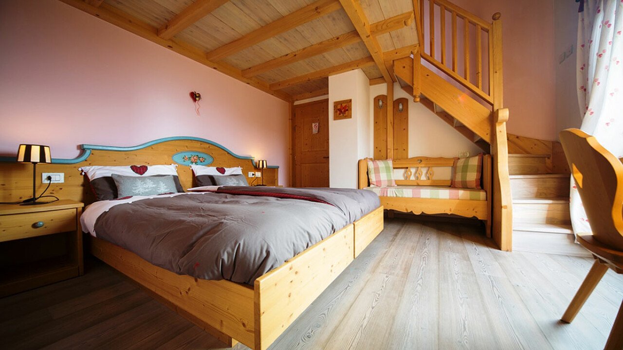 Le 7 camere sono costruite in stile alpino con legno della Val di Fiemme. Sono tutte stanze doppie con aggiunta di un 3° e 4° letto. Dispongono di bagno, phon, set ti cortesia, tv, balcone con vista panoramica. Nel prezzo sono incluse anche la colazione e la merenda pomeridiana.