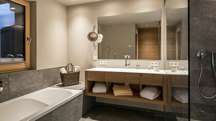 Le camere e suite arredate in legno con un tocco di design dispongono di: bagno con area WC e bidet separata, telefono, TV, minibar, Wi-Fi, borsa wellness, balcone e cassaforte.