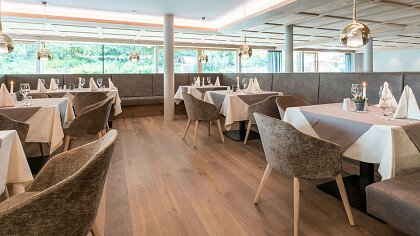 Nella confortevole sala da pranzo dalle grandi vetrate, gli ospiti possono degustare una squisita colazione a base di prodotti altoatesini e un’ottima cena di 4-5 portate accompagnata da un vasto buffet di insalate e dolci. Per un pomeriggio goloso vi attende una deliziosa merenda sulla terrazza soleggiata. Per concludere la serata in bellezza, godetevi un buon cocktail o un bicchiere di vino nel caratteristico bar in stile tirolese. Serate a tema, degustazioni di vino e cene di gala.