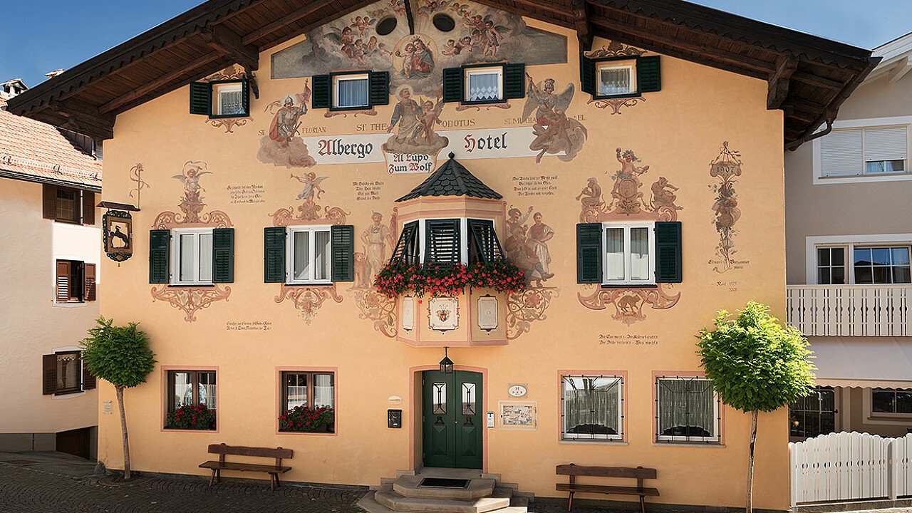 L’Hotel zum Wolf al Lupo a conduzione familiare è uno degli alberghi storici di Castelrotto che vanta una tradizione secolare. Documenti risalenti al XVI secolo lo definiscono come una delle locande più rinomate e ricche di tradizione, grazie anche alla sua facciata decorata con dipinti tradizionali del 1907 ad opera del pittore locale Eduard Burgauner.