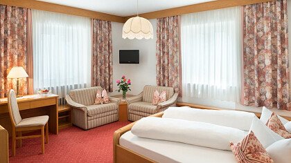 Le graziose camere si compongono di bagno con doccia, telefono, TV, phon, cassaforte e, la maggior parte, di balcone, minibar e stufa in maiolica.