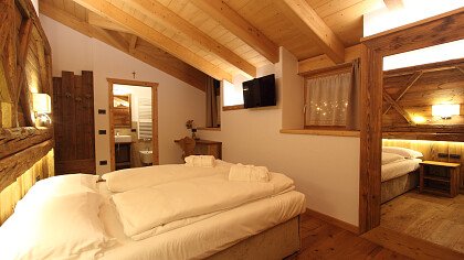 Le accoglienti sette camere doppie, di cui due comunicanti e alcune con la possibilità di aggiungere un terzo letto, sono arredate in legno antico e curate nei minimi dettagli.