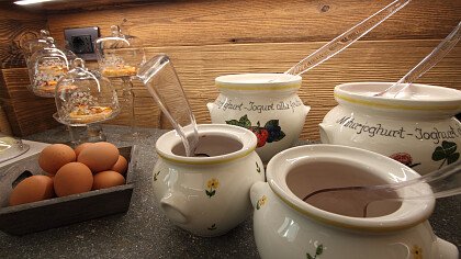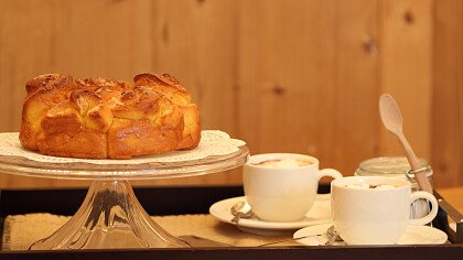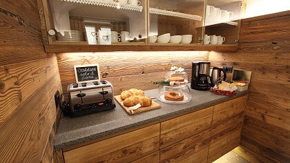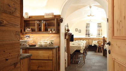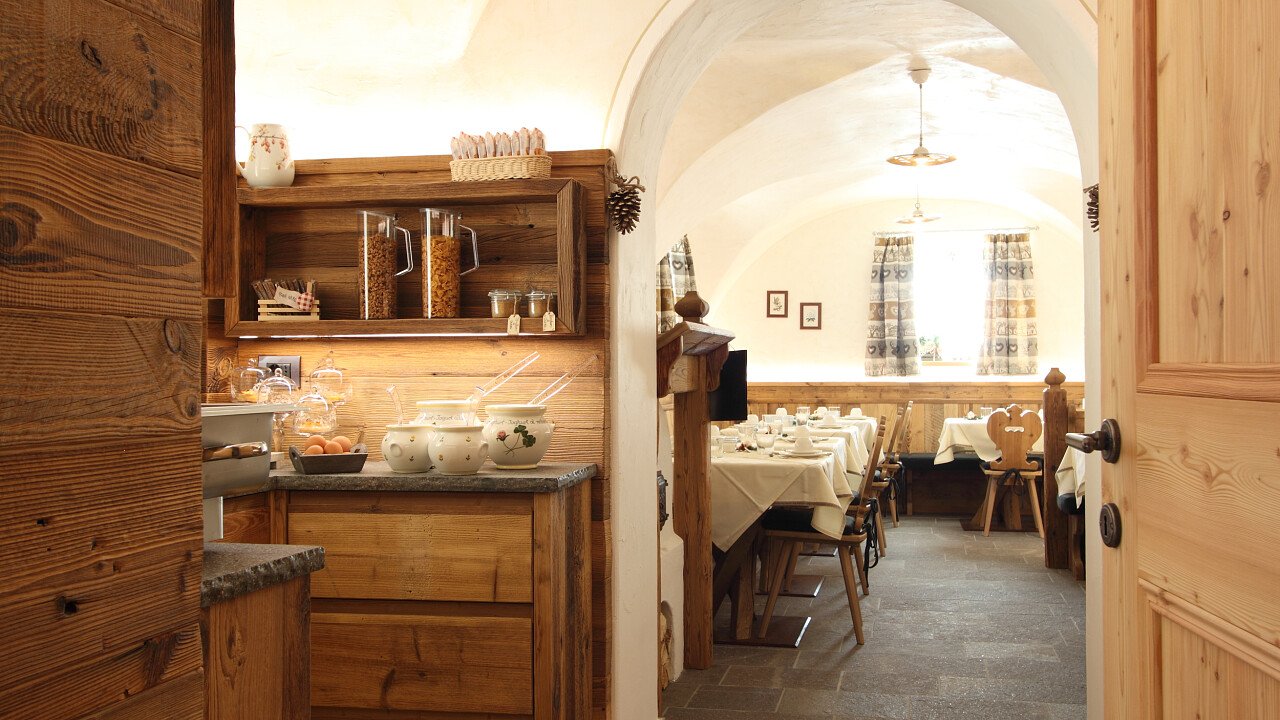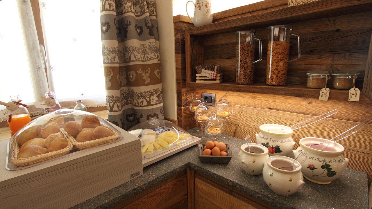 Nella caratteristica sala colazione, adornata con volti antichi, gli ospiti possono degustare un ottimo buffet di dolci fatti in casa, affettati, frutta fresca, centrifughe e yogurt.