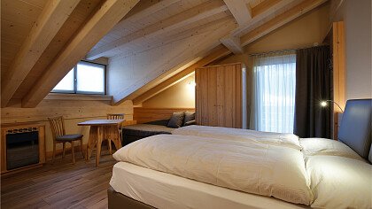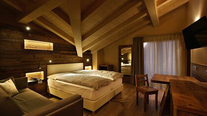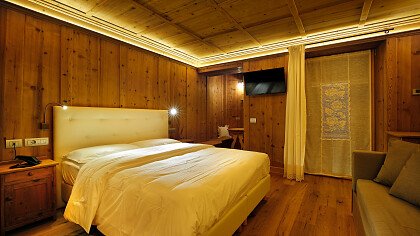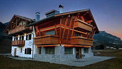 L’Antico Maso è stato realizzato in edilizia ecosostenibile e arredato in legno secondo lo stile alpino locale. Aperto il 7 dicembre del 2016, è frutto di un’attenta restaurazione di un vecchio maso, costruito nella prima metà dell’Ottocento per ospitare il medico condotto della Val di Fiemme, il Dott. Giacomo Spazzali.