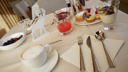 La struttura offre il servizio di prima colazione a buffet con caffetteria servita al tavolo. Tutti i giorni gli ospiti possono degustare una squisita merenda pomeridiana con dolci e salati fatti in casa. Su richiesta ed in particolari occasioni la cucina servirà raffinati menù. Inoltre, è possibile prenotare la sala esclusivamente per feste o eventi privati.