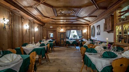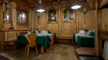 Il raffinato Ristorante Sissi Stube à la carte propone sublimi piatti trentini, a base di ingredienti sempre freschi e stagionali. La cantina dei vini offre il meglio della produzione vitivinicola trentina, altoatesina e italiana. Il bellissimo giardino con vista mozzafiato sulla Catena del Lagorai e sulla torre San Sebastiano invita a romantiche cene a lume di candela o a grigliate in compagnia.