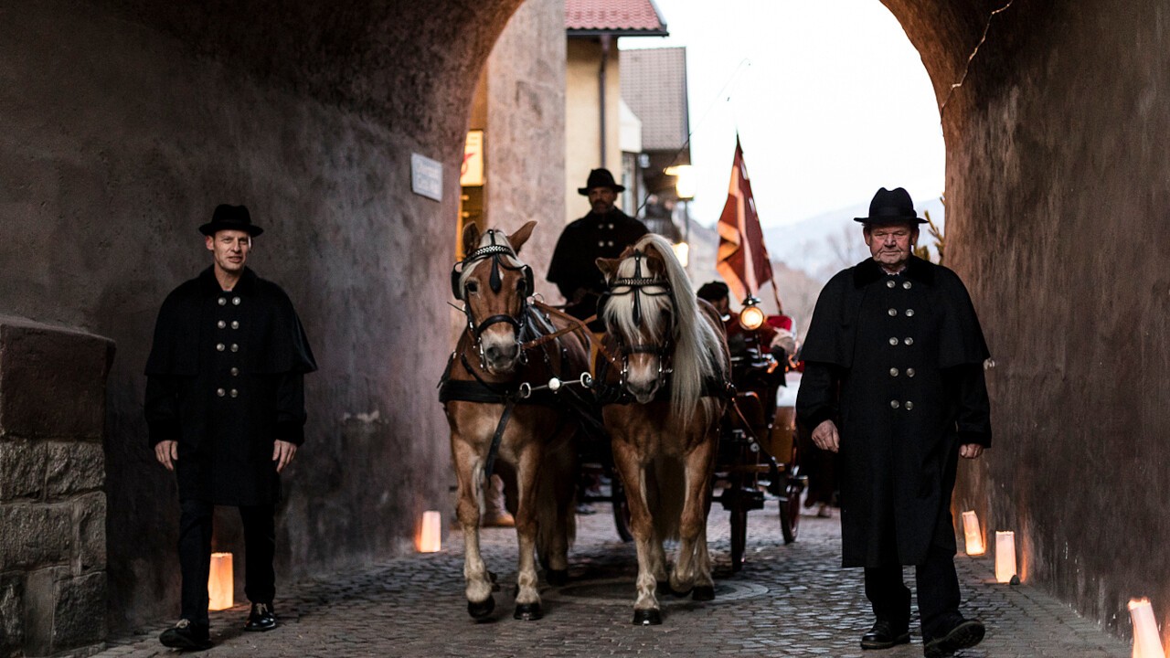 Il Borgo Natalizio di Chiusa si apre con un tocco musicale speciale: i fiati in carrozza attraversano le vie storiche della città, diffondendo l’atmosfera natalizia e invitando a scoprire il mercatino.
