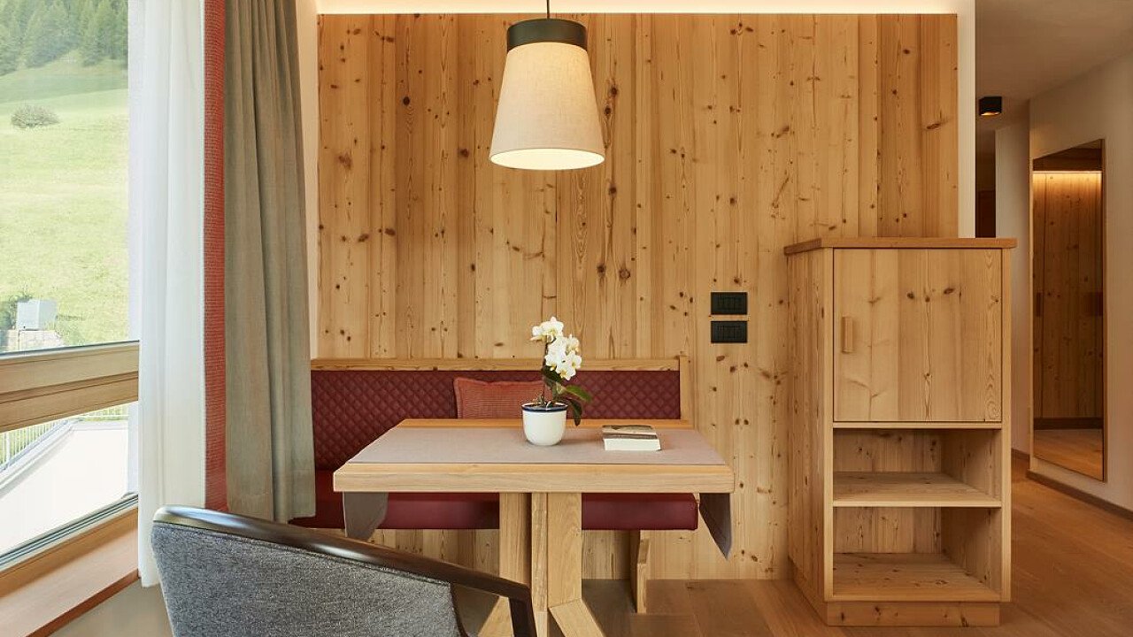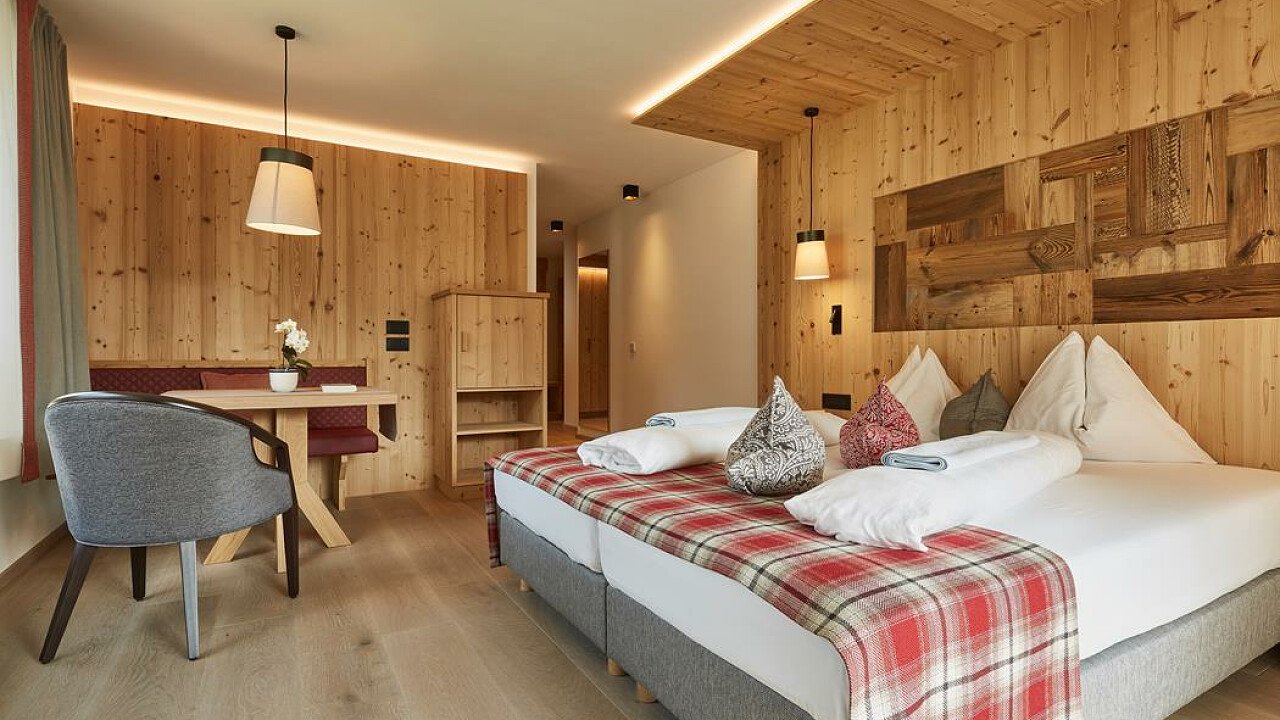 Il Mountain Hotel Mezdì, recentemente rinnovato, si caratterizza per gli ambienti ampi e accoglienti arredati in legno con un tocco di design innovativo. La reception, le camere e il bar sono state completamente ridisegnate.