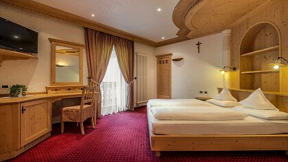 L’hotel in Alta Badia offre ambienti confortevoli ed intimi dove ci si sente subito a proprio agio. Camere e suite per tutti i gusti, arredate in legno e dotate di balcone, TV satellitare con programmi Sky, safe, telefono, Wi-Fi, frigobar, doccia e asciugacapelli.