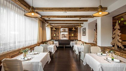 Nella sala da pranzo e nella tradizionale Stube del ristorante si possono gustare i sapori locali grazie ad eccellenti menu a scelta preparati con prodotti selezionati. Ottima e ben fornita cantina dei vini.