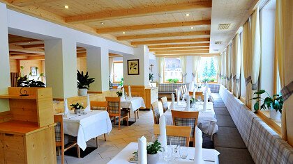 Il ristorante propone un'ottima cucina tipica con specialità ladine ed internazionali, buffet a colazione e per cena due menu a scelta e ricco buffet di insalate. Su richiesta vengono preparati anche menu vegetariani e per celiaci.