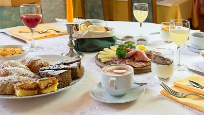 Gli ampi spazi sia interni sia esterni, la pace che regna, l’atmosfera di forte vicinanza con la natura e i suoi segreti, consentono ai nostri ospiti di vivere una vacanza molto versatile ma soprattutto divertente con un programma di svago particolarmente vivace. Escursioni accompagnate da esperti della montagna, gite in carrozza trainata dai cavalli del nostro maneggio, laboratori creativi e animazione serale per i piccoli ospiti, serate di gala… Senza dimenticare il piacere di assaporare la nostra cucina, partendo dalla gustosa prima colazione a buffet con prodotti genuini locali. Tornati dalle vostre avventure, vi abbandonate a pranzo e cena con deliziose specialità. Per le vostre uscite, vi prepariamo anche il pranzo al sacco.