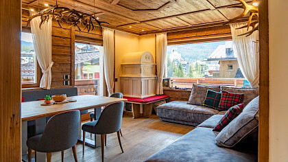 La posizione dell'appartamento è strategica: Corso Italia si raggiunge in circa 10 minuti a piedi, mentre lo Stadio Olimpico del Ghiaccio si trova nelle immediate vicinanze. I principali impianti sciistici sono accessibili in soli 5 minuti d’auto. L’area circostante offre sentieri escursionistici, rifugi gourmet, boutique di charme e gallerie d’arte, immersi nella cultura alpina locale.