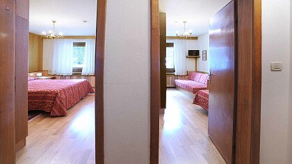 Servizio curato e atmosfera tradizionale fanno dell’hotel pensione un’ottima meta di vacanze sia estive che invernali. Recentemente ristrutturato, dispone di camere e mini suite per famiglie servite da ascensore e dotate di: bagno privato con asciugacapelli, telefono diretto, TV Sat a schermo piatto, cassetta di sicurezza e la maggior parte di balcone.