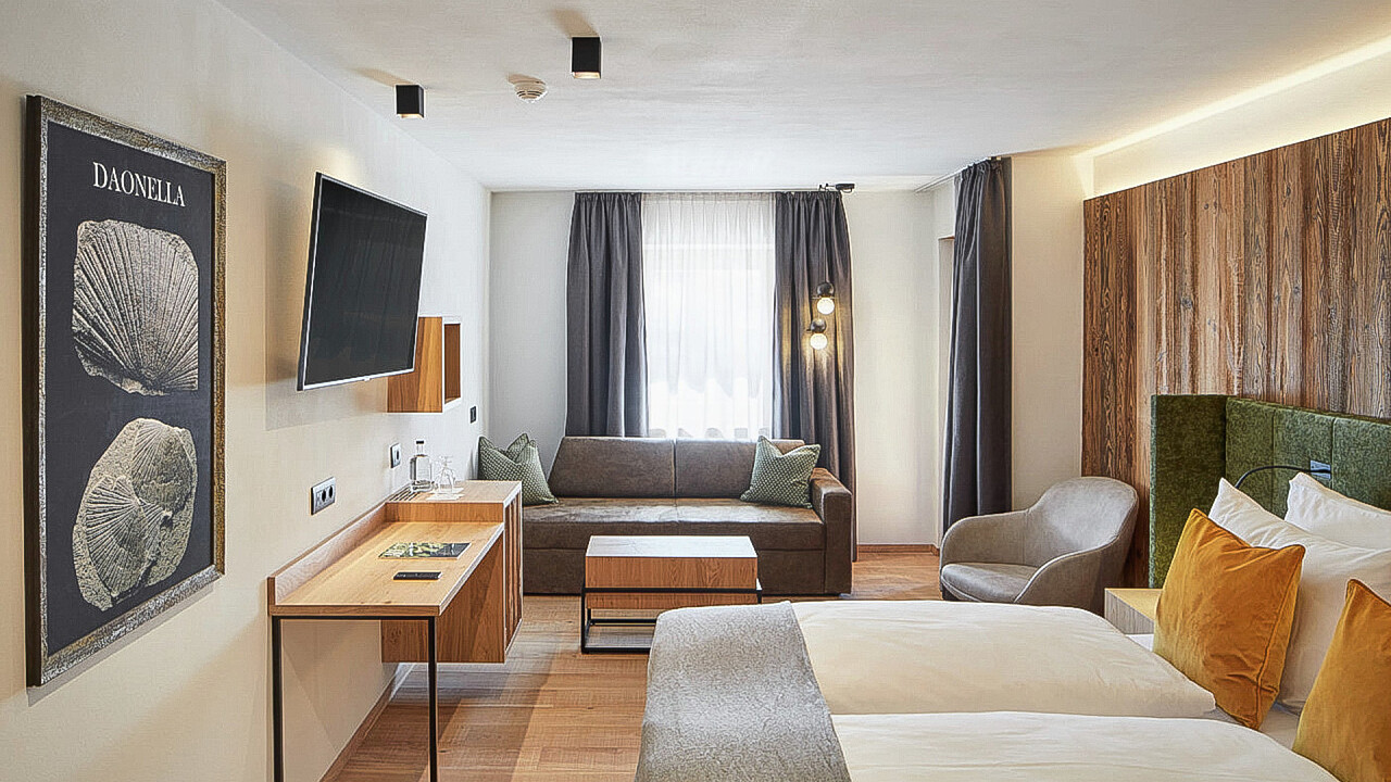L'uso del legno e dei tessuti locali, dai colori neutri, rende le camere e le suite dell'Hotel Marmolada un ambiente accogliente, ideale per trascorrere le vacanze in completo relax, facendovi sentire come a casa vostra.