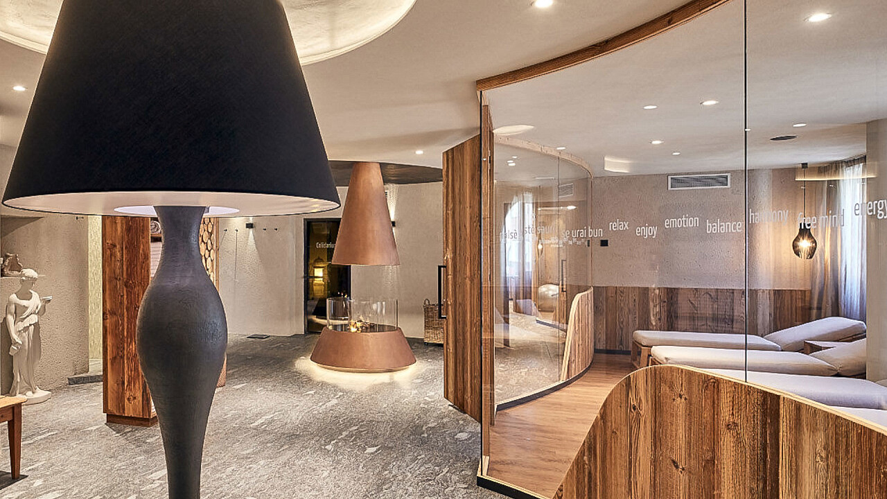 Relax nell'oasi benessere attrezzata di sauna finlandese, biosauna, bagno turco, calidarium e sauna lounge, zone relax con lettini ad acqua, piscina interna riscaldata con zona relax e angolo con tisane e acque profumate, lettini, grotta Whirlpool esterna con vista sul Sassongher e area fitness con tecnologia Technogym. Si eseguono massaggi e trattamenti. Gli ospiti possono usufruire degli accappatoi e asciugamani messi a disposizione dalla struttura.