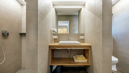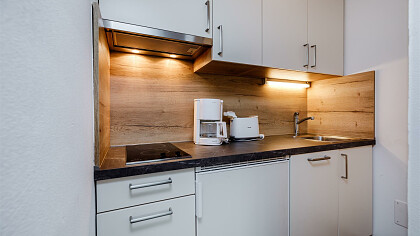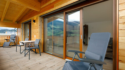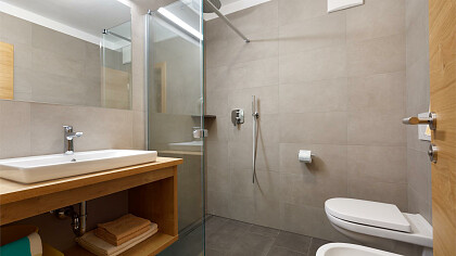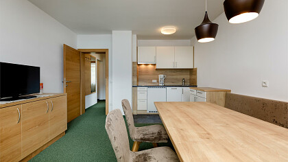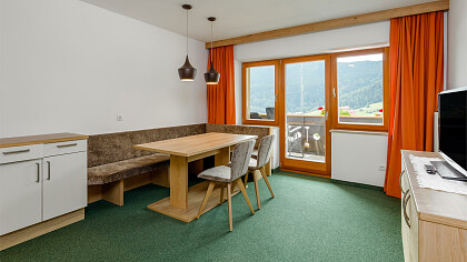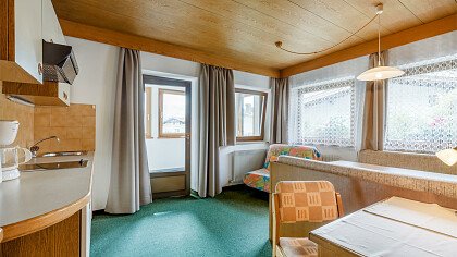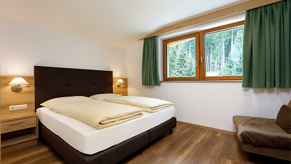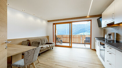 Dall'estate scorso nella casa Heidi gli ospiti possono scegliere tra cinque appartamenti da 2 a 8 persone: tra quello nuovo tipo "Vista Lago" e tra quelli rinnovati ed arredati in uno stile moderno ed accogliente con soggiorno ed angolo cottura, una o due camere da letto, un bagno ed un balcone verso sud con una vista panoramica sul lago di Resia e sulle montgane attorno con l'Ortles.