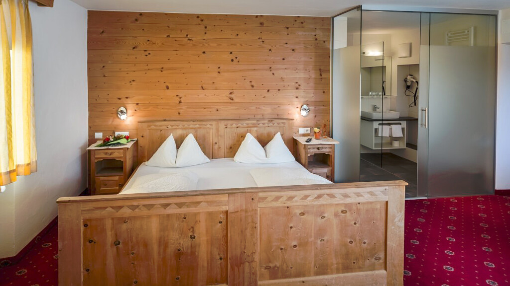 Ampie camere composte di balcone con vista sul lago di San Valentino e l’Ortler, scrivania, doccia, WC, asciugacapelli,...