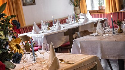 Al ristorante, aperto a pranzo e a cena, si possono degustare un’abbondante colazione e un’ottima cena accompagnata da un ricco buffet di insalate e di dessert. Serate tirolesi, aperitivo di benvenuto e menù festivo nelle giornate di festa.