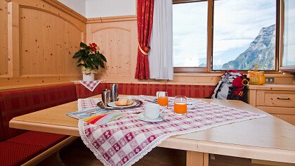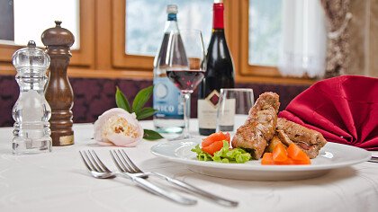 La struttura offre una cucina attenta e curata a base di prodotti a km 0 secondo la miglior tradizione di cucina tipica trentina. Il ristorante, aperto a pranzo e a cena, è a disposizione anche per eventi speciali. Su richiesta si effettuano packet lunch, menù per bambini e per persone con intolleranze alimentari.