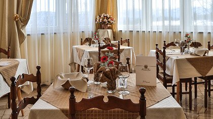 Al ristorante si possono degustare un’abbondante colazione, ottimi pranzi e cene a base di specialità trentine e non solo, abbinate a raffinati vini regionali. Su richiesta piatti senza glutine o lattosio e vegetariani.