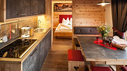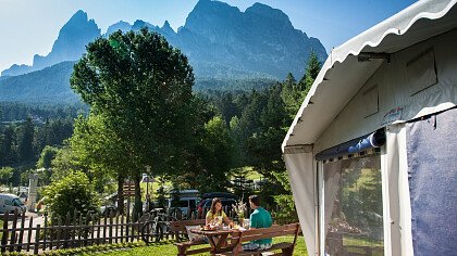 Inoltre, si possono affittare anche le confortevoli e accessoriate roulotte "Hobby Landhaus" ed alcuni appartamenti da 2 a 5 persone. Se volete vivere un’esperienza speciale, soggiornate nelle nuovissime Dolomiti Lodge in legno di cirmolo o nelle bio tende in legno.