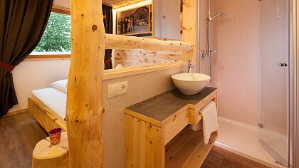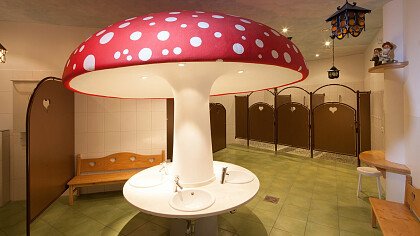 Per gli impianti sanitari gli ospiti possono scegliere tra l'elegante Dolomiten Bad e i bagni privati; per i bimbi c'è anche lo "Zwergen-Bad".