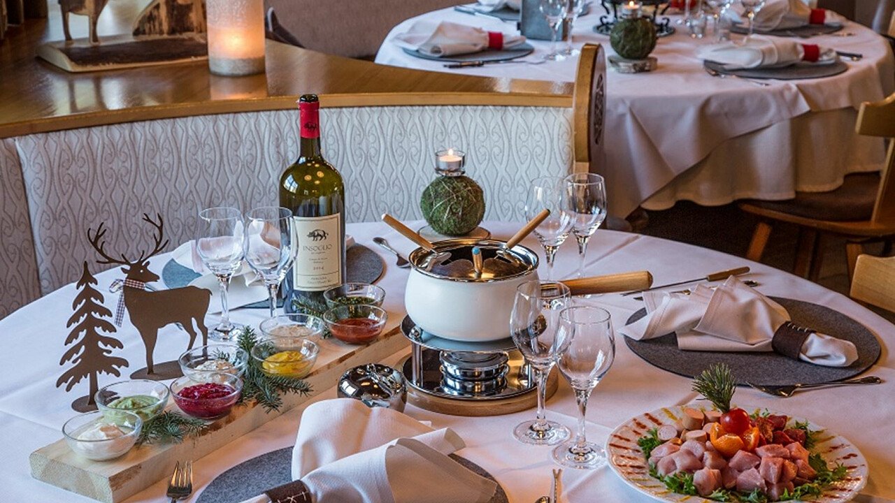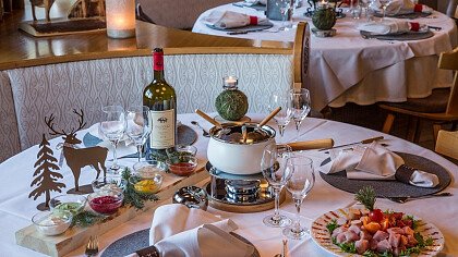Il romantico ristorante "Zur Quelle" propone un ricco menu con diversi tipi di fonduta, un variegato buffet d'insalate ed ottimi gelati.