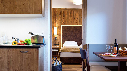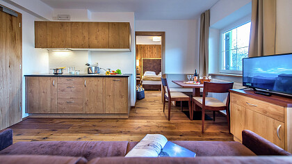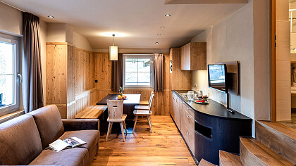 Nuovi appartamenti in pino cembro o legno antico con cucine dotate di piano cottura in vetroceramica a quattro piastre,...