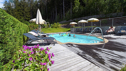 Dopo un’intensa giornata di sport, rilassatevi nel centro benessere attrezzato di: sauna finlandese, bio sauna, bagno turco, lettino a raggi infrarossi, sala relax con letti ad acqua, fieno o cirmolo, vasca idromassaggio, piscina esterna riscaldata e percorso Kneipp. Su richiesta si effettuano massaggi.