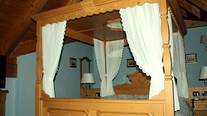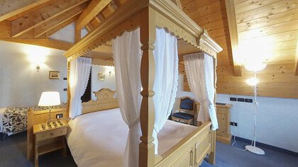 La caratteristica struttura offre tre tipologie di camere (standard, junior suite e junior suite sposi) in grado di soddisfare ogni esigenza. Tutte si compongono di telefono, Wi-Fi, TV, cassaforte, servizi privati, phon, accappatoi o terrazza con vista spettacolare sulle Pale di San Martino.