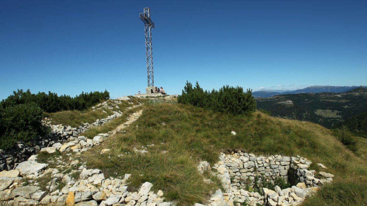 Partenza dal piazzale sterrato del crocicchio dei Camini vergo Monte Maggio. Attraverso un comoda strada sterrata si sale in quota fino a raggiungere il dosso delle Cargaore (ampio panorama sulla sottostante Val di Terragnòlo e sul massiccio del Pasubio). Restare sempre sulla strada sterrata, una ex strada militare, e salire verso l'alto versante orografico destro della valle, vicino monte Maronia. Avvicinarsi alla vetta del monte Maggio. Nel tratto finale del percorso la strada si restringe e si trasforma in sentiero. Prestare molta attenzione poiché ci sono certi passaggi esposti! Prima di giungere alla vetta un incasso nella montagna porta sul versante nord. Dopo una svolta a destra ci si immette sulla ex strada militare Malga Zonta - monte Maggio. Salire dunque fin sulla vetta del monte, contrassegnata dalla caratteristica croce di ferro, a ricordo dei caduti del conflitto 1914-1918. Vista ampia sulle vallate circostanti.